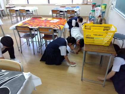 4時間目に大掃除をしました。教室だけでなく特別教室、廊下、トイレなど時間をかけて丁寧に掃除しました。夏休み中に学校が大阪市の行事の会場になったり、お客さんが来られたりする機会があります。生徒の皆さんが心を込めて掃除してくれたおかげで、気持ちよくおむかえすることができます。