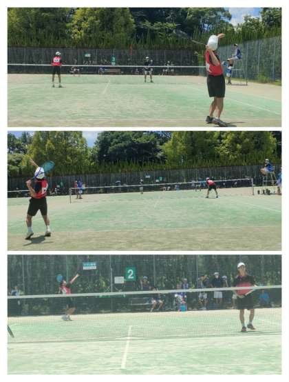 枚方四中との試合でしたが、1試合目は0-4で敗戦。しかし、後衛のレシーブがコースに決まったり、前衛のスマッシュも決めたりと自分たちのプレーはできました。2試合目もリードを許す展開でしたが、後衛のストロークも安定し、前衛の積極的なアプローチからスマッシュを決める場面を多く作り、善戦を展開。しかし、ダブルフォルトをきっかけに再びリードを許し、2-4で敗戦。初戦敗退となりました。3試合目はファイナルゲームとなりましたが、粘り強いラリーに打ち勝ち4-3で勝利しました。