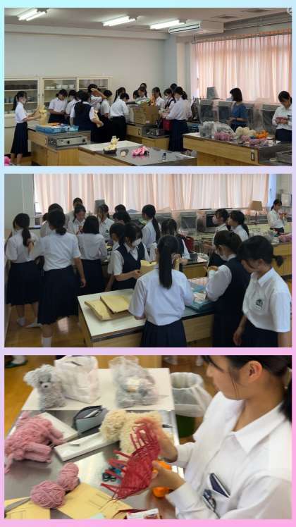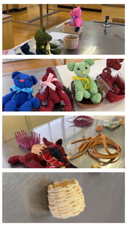 家庭科部では、作品作りに取り組んでいます。今は、ぬいぐるみとかごの製作中です。