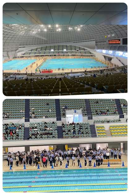 全国中学校水泳競技大会大阪府予選が、RACTABドーム(大阪府立門真スポーツセンター)メインプールで、昨日、今日と開催されています。また、大会は