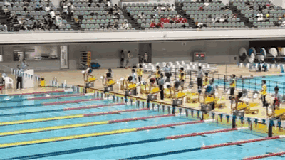 女子400m個人メドレーに1年生が出場。50mプールでのこの種目は初めての挑戦とのこと。しかも、強豪が揃う第1組での泳ぎになりました。