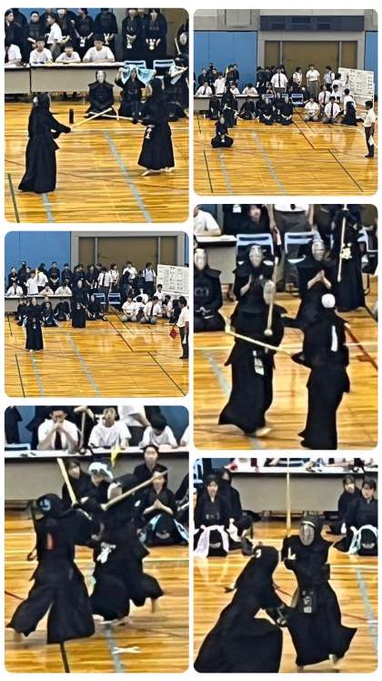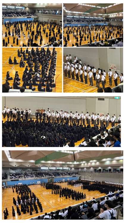 剣道部の大会2日目。アップと女子開会式、女子の初戦の写真です。