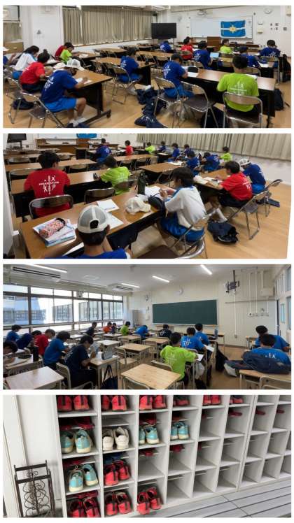 男子ソフトテニス部は、朝の時間に練習を終えてからの学習会。それぞれに課題を持参して、取り組んでいました。