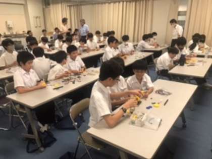 技術部は東我孫子中学校で行われている『ロボコン技術講習会』に参加しています。