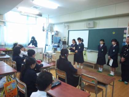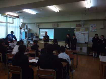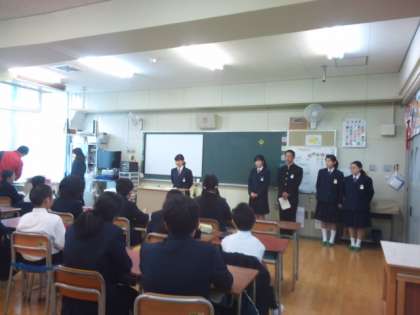 生徒会メンバーとESS部メンバーは開平小学校へ東中学校の紹介に行きました。