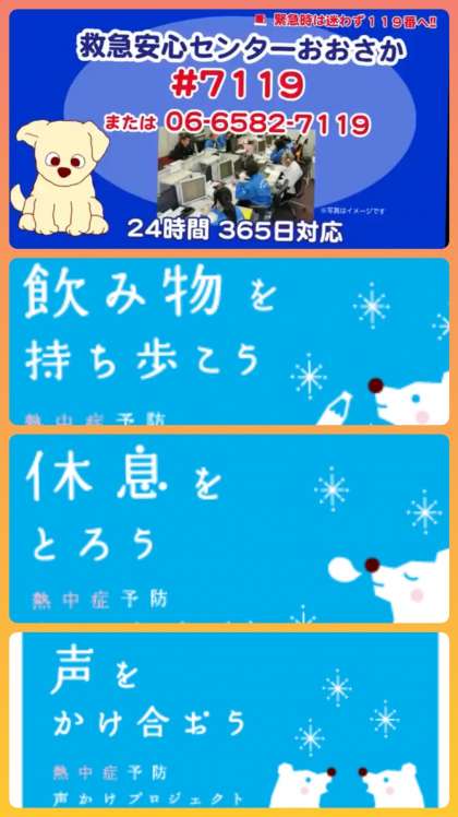「救急安心センターおおさか」のアニメ「熱中症予防」より編集して掲載しました。