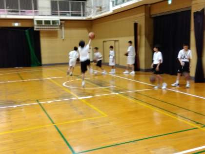 午後からは体育館では男子バスケットボール部、運動場では野球部が練習しています。曇り空ですが、湿度も高いので、休憩と水分補給をしながら練習をしています。生徒たちは熱心に練習に取り組んでいます。