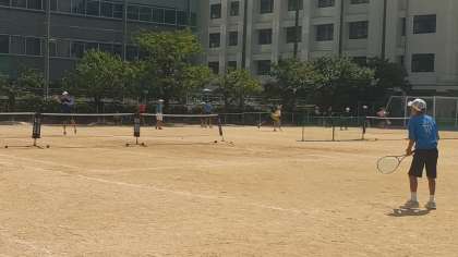 顧問の先生もラケットを握って見本を見せておられました!