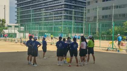 大会を勝ち上がったソフトテニス部も、たくさん生徒が参加しています。卒業生の先輩も来てくれていました。