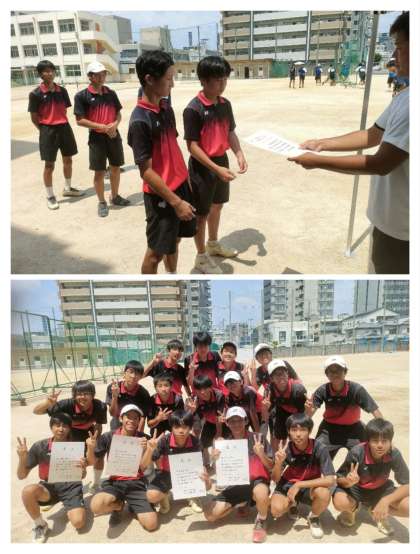 準決勝で敗れベスト4に入賞したペア。決勝まで進み、惜しくもファイナルゲームで敗れ準優勝となった1ペア。ベスト4に2ペアという結果になりました。3月の2年生大会で優勝したペアは今回も入賞を狙いましたが、惜しくも敗戦。ベスト4に入れず悔しい思いをする結果となりました。9月の長居庭球場で行われる最後の総体で雪辱を晴らしましょう。