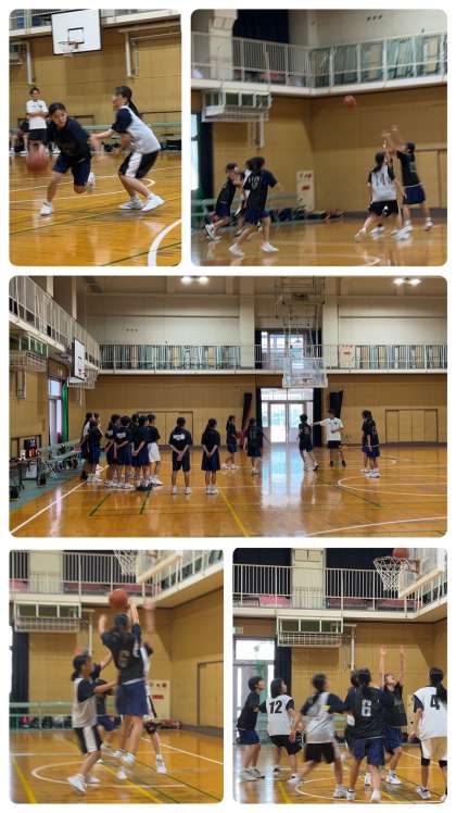 空調を効かせた体育館で、女子バスケットボール部が練習試合。この間、積み重ねてきた練習の成果を実戦でトライします。