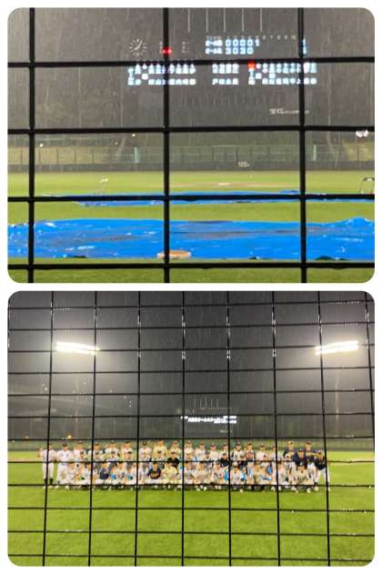 試合は残念ながら、雷と大雨警報が発令されたこともあり、ノーゲームになりましたが、試合前の練習など思い出の時間ができました。