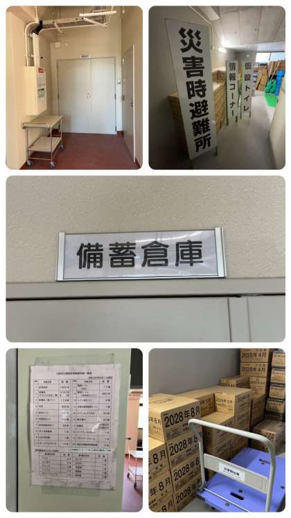 写真は、有事に備え、備蓄倉庫(新校舎の1階)を点検した際に撮影しました。