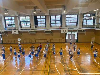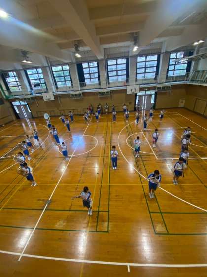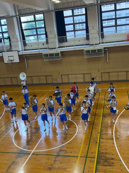 吹奏楽部は、体育館で空調を効かせて、マーチングの練習です。9月13日の体育大会まで1ヶ月となりました。徐々に仕上がってきているようです。