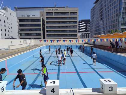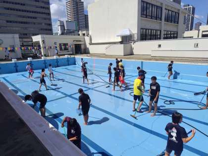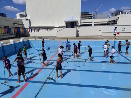 本日はプール掃除をしました。シーズンも後半になり、今週末の大阪府学年別大会には個人8人、リレー1チームが出場します。綺麗になったプールで頑張ります。