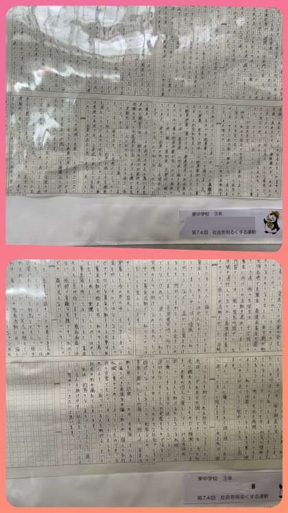 東中生には、後日、中央区推進委員会委員長の区長さまが、来校され、表彰状が授与されます。