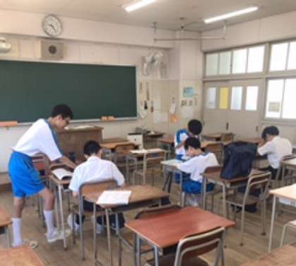 夏休みの宿題のやり残しがないかを点検し、できていないところが見つかれば、その場で取り組みます。