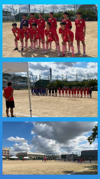 サッカー部が、大阪市秋季総体本戦に、3ブロック代表として出場します。強い陽射しのもと、トンボがたくさん飛び交うグランドで、相手は4ブロック代表の強豪校です。仲間とともに、これまで蓄えた力と技を存分に発揮しましょう。