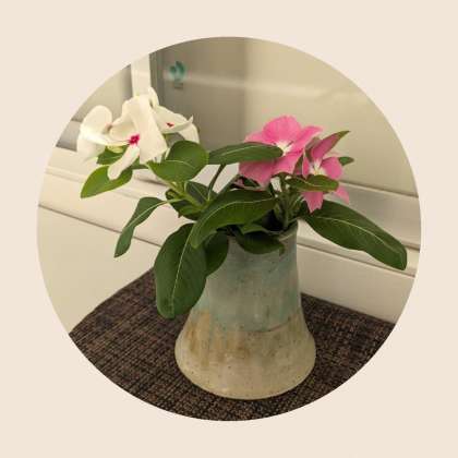 玄関ホールと職員室前にお花を生けていただきました。『ご近所の方が育てたニチニチ草を頂いて生けてみました。残暑厳しいですが新学期もよろしくお願いします』とのメモを添えていただきました。新学期に向けて、気持ちが引き締まります。いつもありがとうございます。こちらこそ2学期もよろしくお願いします。