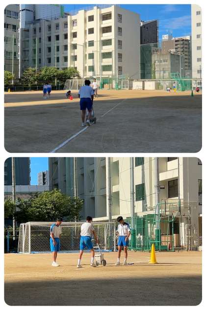 体育大会の運営を担う体育委員のメンバーの活動が本格化します。初日は、グランドのライン引や石拾いなどをしました。