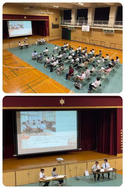 本校では、英語部門が開催され、本校の英語科の先生方が、会場整備・受付・司会進行、そして、実戦発表を行い、活発な意見交換がなされ、50人近い先生方が研鑽を積まれました。