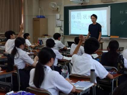 2年社会:扇状地の特徴について学習しました。扇状地がなぜ果樹栽培に適しているのかを考えました。