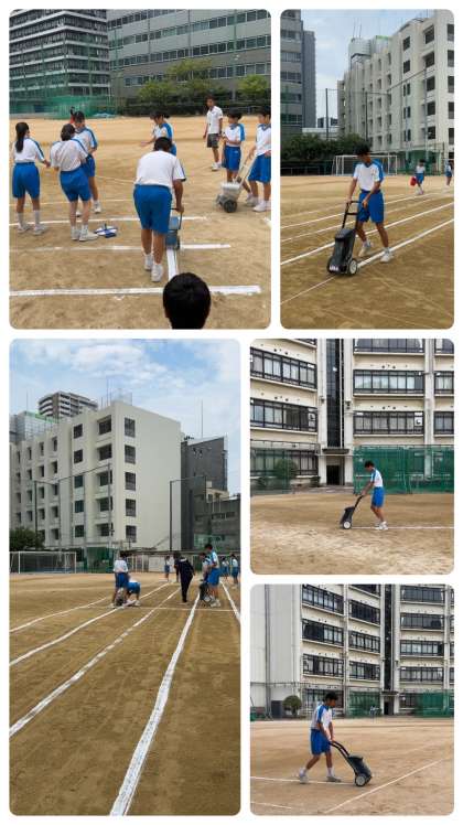 1・2年生が、グランドのライン引きなどの整備を行いました。3年生がいないので、2年生が1年生に声をかけて、ラインが引かれていきます。何事も経験です。今日の経験を明日からの活動に生かしましょう。体育大会本番まであと10日。