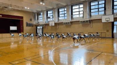 朝の体育委員は、本番に向けて動きの確認です。グランド整備は実習生の2人の先生が、手際よくラインを入れています。2週間の実習の1つの成果でしょう。