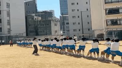 5時間目には、体育館で開会式の練習、そして各競技の集合練習を行いました。その確認が終わったあと、6時間目には、学年練習の綱引きの練習です。