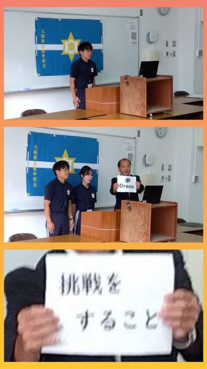 教育実習の最終日。代表の実習生から全校生徒に、しっかり考えてきたであろう立派なスピーチをもらいました。また、校長先生からは餞(はなむけ)の言葉として『夢』の実現に向けて『努力と挑戦を継続』してほしいこと。『勇気を待って一歩前に』『チームで考えること・考え抜くこと』など『社会人基礎力』を題材に講話がありました。実習生のますますの活躍を祈念しています。