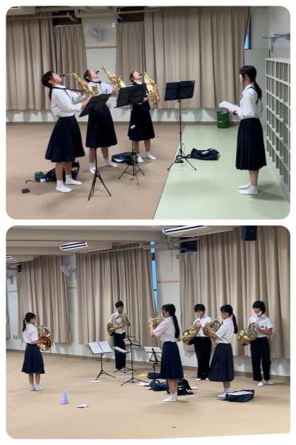 吹奏楽部は、体育大会のマーチングなどの本番に向けて、仕上げの練習です。