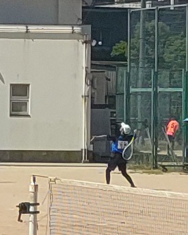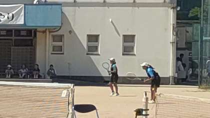 ソフトテニス部は、今朝から西淀中学校でなにわカップに参加しています。