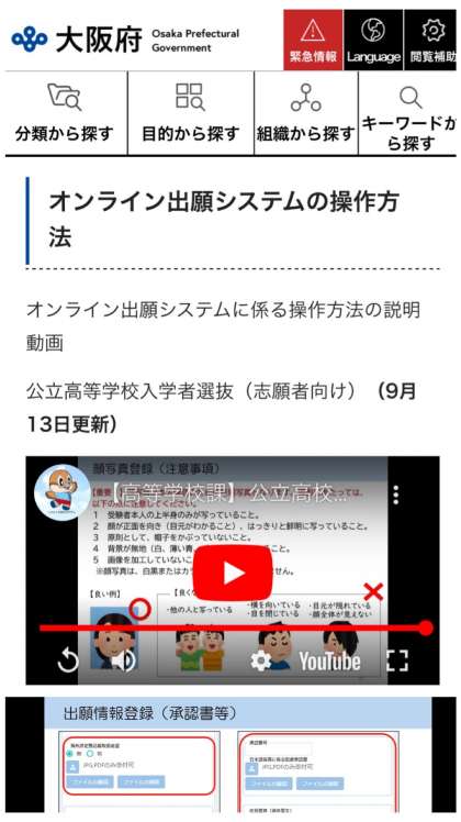 大阪公立高校オンライン出願システムの操作方法にについて