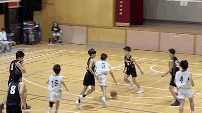 試合終盤で、フリースロー外した後も、諦めずに仲間がボールを繋いでシュート決めました。