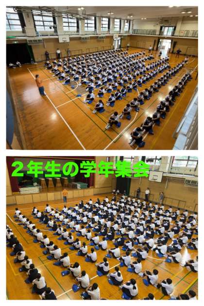 各学年別の学年集会は、水曜日が1年生、木曜日は2年生、金曜日が3年生です。前期の学級代表の皆さんが、司会進行を行い、どの学年集会もずいぶんとスムーズに運んでいます。何事も経験は財産です。