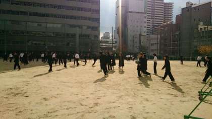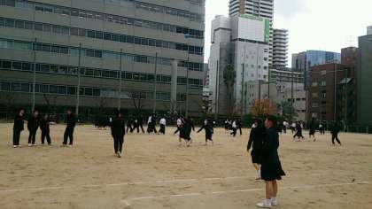お昼になっても気温は上がらず、冷たい風が運動場を吹き抜けていきます。そんな寒さをもろともせず、東中生は元気一杯!楽しそうに、昼休みを過ごしています。