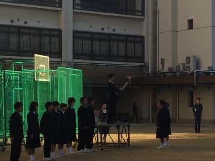ソフトテニス部と野球部の表彰があり、委員会からの連絡後、校長先生から、今日は2つの週間を関連したお話がありました。