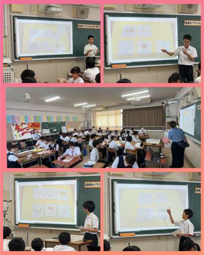 この後、班に分かれて、バランスよく食べ続ける朝ごはんについて考え、班ごとに考えた内容を全体化します。