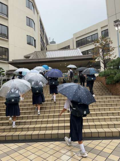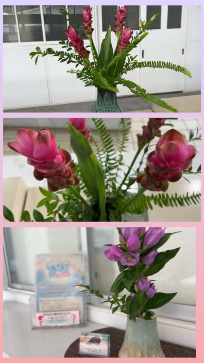 久しぶりに雨の朝を迎えました。玄関ホールに『クマクル・玉しだ』、職員室前に『リンドウ』のお花を生けていただきました。いつも東中生のためにありがとうございます。