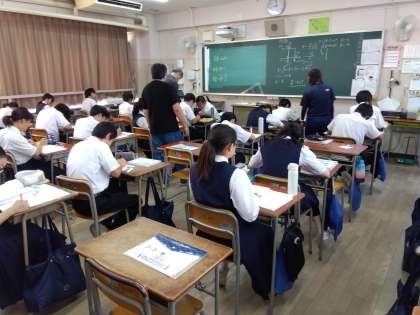 2年数学:1次関数のグラフの学習をしています。1次関数の式からグラフに書き込みました。
