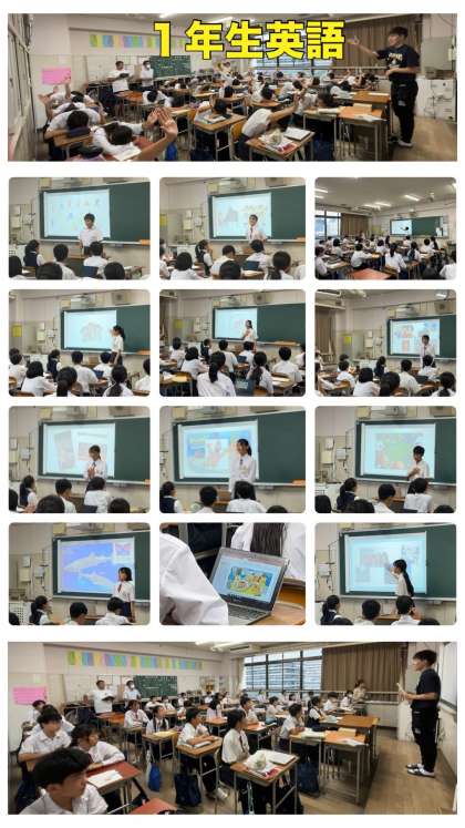1年生の英語では、英語で自己紹介(プレゼンテーション)に挑戦しています。今日は、各班代表12人によるスピーチ大会です。自分で作成したスライドを使ってスピーチした後は、質疑応答です。緊張もあるでしょうが、しっかりとスピーチしていました。また、学級全体がしっかりと聞いている態度も素敵でした。