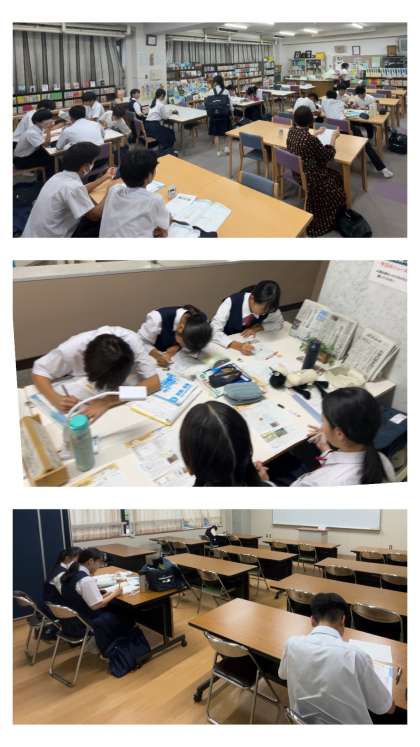 元気アップの皆さんによる学習会を行いました。参加した生徒たちは、図書室と学習室、廊下の特別コーナーに、「助け合いコース」と「黙々コース」に分かれて学習を進めています。元気アップの皆さま、いつもありがとうございます。参加した生徒の皆さんが、学んだことを家庭学習につなげて、中間テストで成果として実りますように。。。