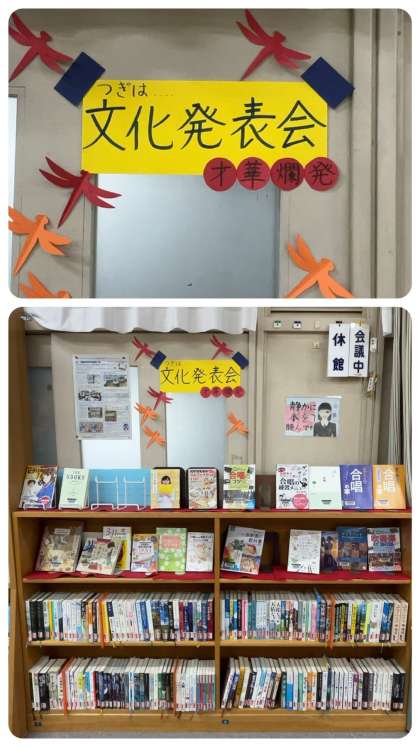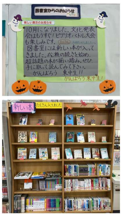 また、図書室には、新しい本が入り、書架に並べるや否や、人気本から貸し出されれてるようです。掲示物も秋らしいものになっています。いつもありがとうございます。