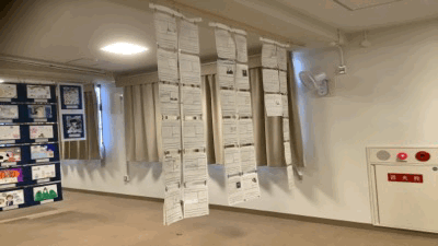 (新校舎6階多目的室・4階美術室、本館1階多目的室、玄関ホール)