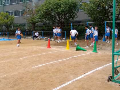 3年男子体育:走り幅跳びに取り組んでいます。順番に計測をしました。