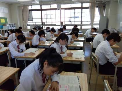 3年英語:GTECのテストに取り組みました。今日は3時間かけて4技能のテストを行いました。