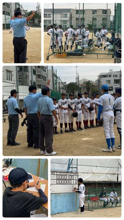 野球部が、大阪市第3ブロック大会(2日目)に出場。顧問の先生方と共に、生徒たちは、試合だけでなく、審判や記録(スコアーラー)、ボールパーソンなどの試合の運営も担います。試合では、体調を崩していた選手もスタメンで出場。土日と連戦になりますが、体調を整えて、練習の成果を存分に発揮しましょう。