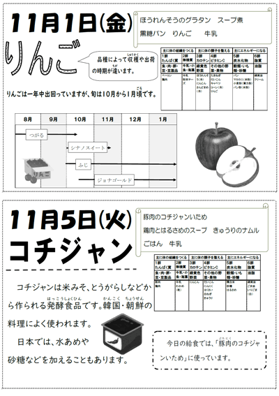 『食育つうしん・給食で食を考えましょう!!(11月号)』を掲載します。