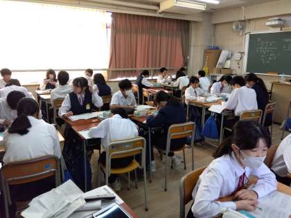 1年数学:比例・反比例の問題演習に班で話し合いながら問題に取り組みました。