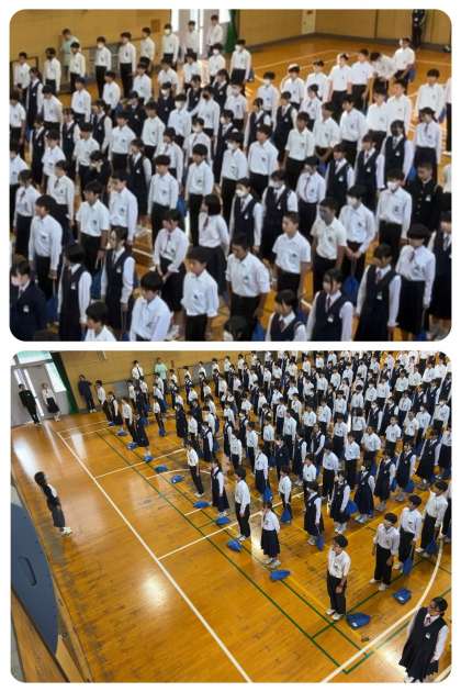 2年生の学年集会です。合唱コンクール4組・6組 優賞おめでとうございます♪